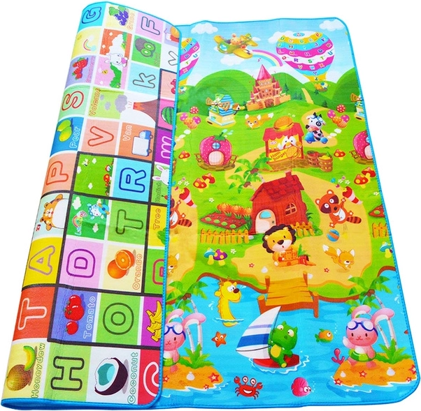 Představujeme vám dvouvrstvou hrací podložku, která je ideálním doplňkem do každého dětského pokoje. Její dvoustranné provedení nabízí zábavné vzdělávací prvky - z jedné strany je zobrazen alfabet a z druhé strany hrací plocha s motivem vesnice.