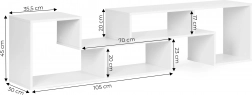 Knihovna je vyrobena z laminované dřevotřísky, známé svou odolností vůči poškrábání a zabarvení. Obsahuje 4 funkční police, z nichž každá poskytuje dostatek prostoru pro uložení různých předmětů – od knih a dekorací po malé doplňky.