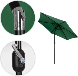 Klonitelná střechová část a mechanismus na kliku umožňují snadné nastavení pozice slunečníku podle potřeb. S průměrem 270 cm poskytuje slunečník rozsáhlou plochu stínu, ideální pro relaxaci na zahradě, terase nebo balkónu.