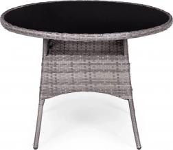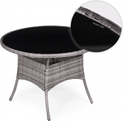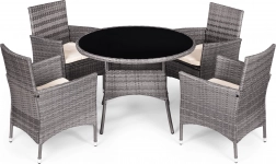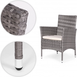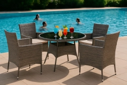 Sada je vyrobena z pevného polyratanu, který je odolný vůči slunečnímu záření, vlhkosti a změnám teploty. Jeho povrch je navíc snadno čistitelný – stačí otřít vlhkým hadříkem.