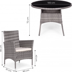 Přineste si do svého venkovního prostoru komfort a styl s touto zahradní soupravou z polyratanu. Je ideální pro letní setkání, grilování, ranní kávu nebo jen relaxaci s knihou. Díky své odolnosti vůči počasí jej můžete nechat venku po celou sezónu, aniž byste se museli bát poškození.