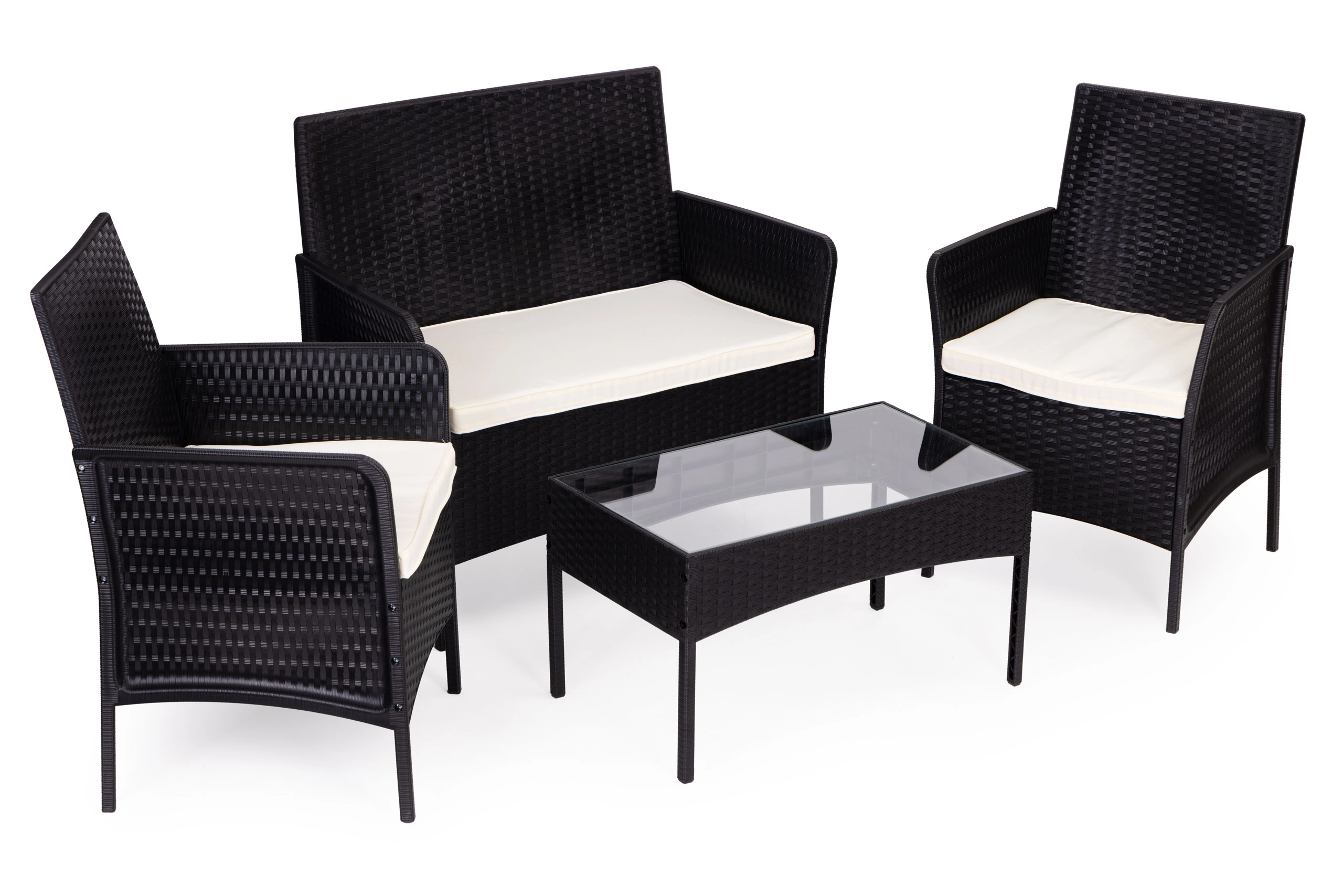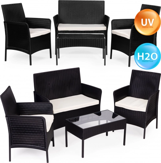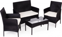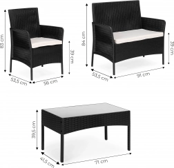 Užijte si pohodlí se stylovou sadou zahradního nábytku pro 4 osoby od MultiGarden. Tato sada je ideální pro zahradu nebo terasu a obsahuje dvě křesla, lavici a stůl s temperovaným sklem. Díky svému odolnému provedení je nábytek voděodolný a odolný vůči povětrnostním vlivům.