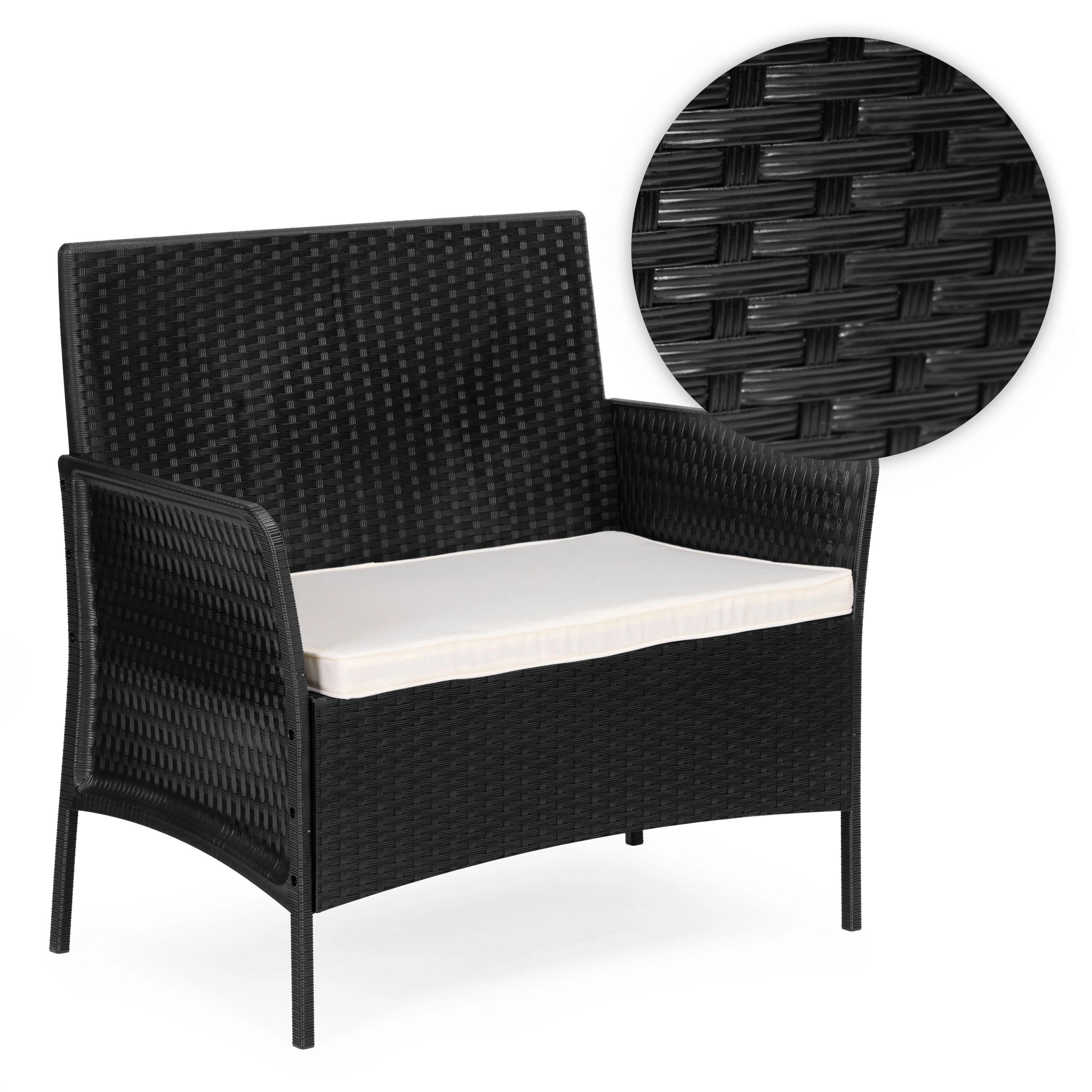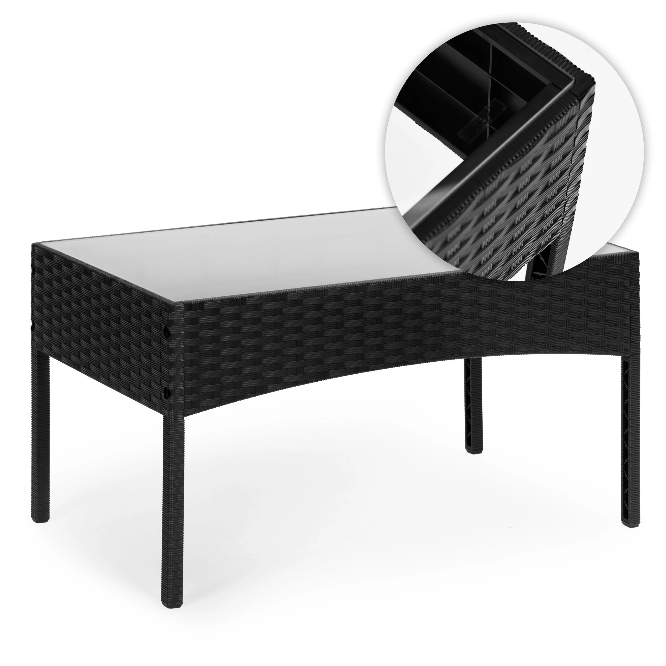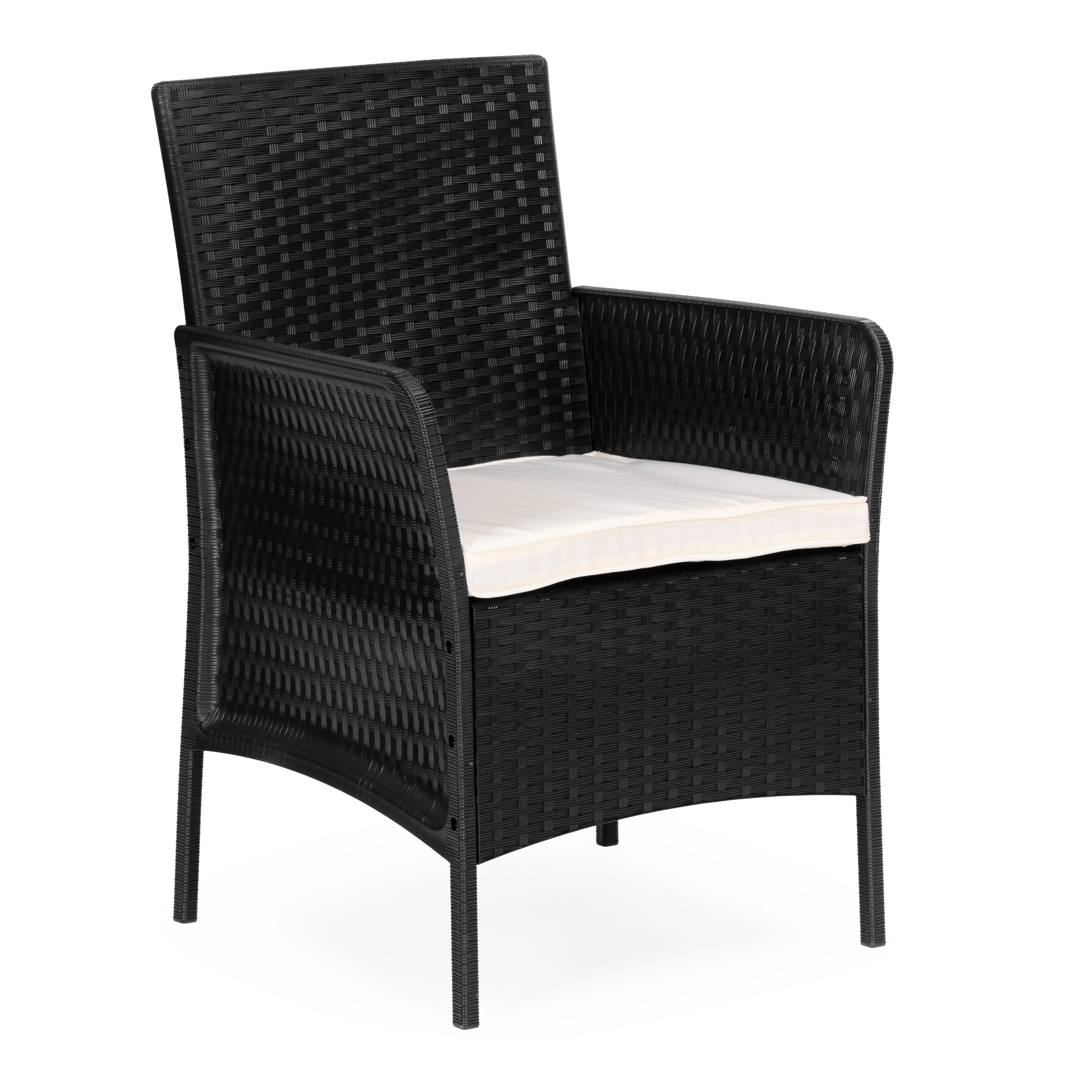 - Odolná konstrukce – sada je vyrobena z plastu, což jí zajišťuje výjimečnou odolnost a odolnost vůči vnějším vlivům jako déšť, slunce a změny teplot. Povrch má přirozenou texturu ratanového pletení, což jí dodává elegantní vzhled.