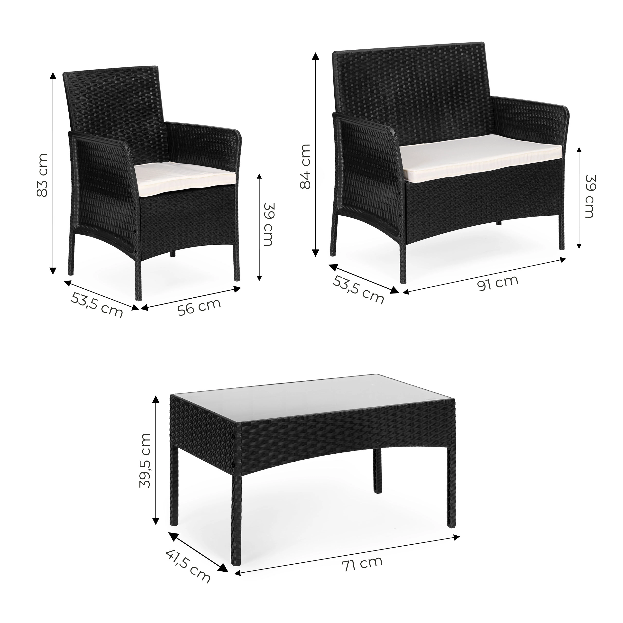 Proměňte svou zahradu nebo terasu s elegantní sadou zahradního nábytku od MultiGarden. Tato praktická sada pro 4 osoby zahrnuje dvě křesla, lavici a stůl s temperovaným sklem. Skvěle se hodí do různých venkovních prostorů – od domácích zahrad a prostorných teras po balkóny a altány. Univerzální design inspirovaný ratanem doplňuje jak moderní, tak klasické prostředí.
