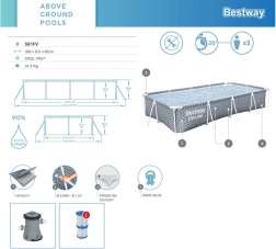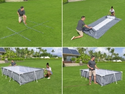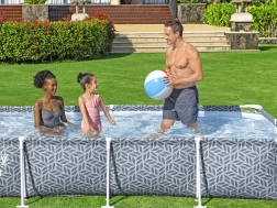 Obdélníkový bazén BESTWAY Steel Pro nabízí skvělý poměr velikosti a stability. Trojvrstvá stěna Tritech (výztuž z polyesterové síťoviny mezi dvěma vrstvami PVC) je mimořádně odolná vůči protržení a roztažení, zatímco ocelový rám se systémem FrameLink zajišťuje pevné a bezpečné spojení bez koroze v místě kov–kov. Integrovaný vypouštěcí ventil usnadňuje rychlé vypuštění vody pomocí zahradní hadice.