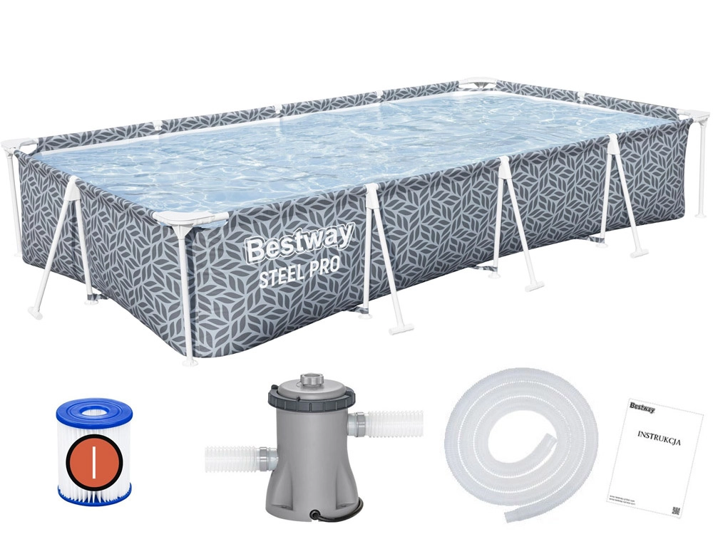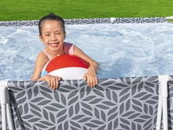 Součástí setu 7 v 1 je vše, co potřebujete pro rychlý start: filtrační pumpa o průtoku 1 249 l/h, filtr typu I, hadice, sítka a spony i návod. Montáž bez nářadí zvládnete přibližně za 40 minut. Moderní šedý vzor a bílý rám dodají vaší zahradě elegantní vzhled a dětem i dospělým spoustu letní zábavy.