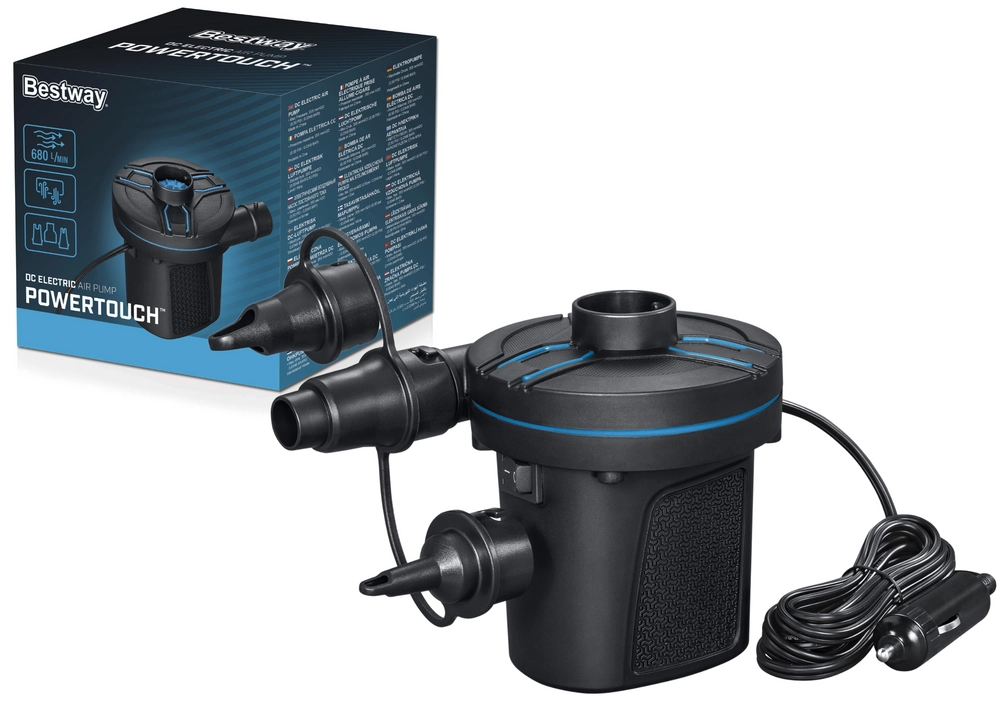 Tato elektrická pumpla značky Bestway je skvělá volba na cesty k vodě. Díky kompaktnímu designu je snadno přenosná a hodí se do batohu či tašky na pláž. Umožňuje nejen rychlé nafouknutí, ale i vypuštění vzduchu, což usnadňuje skladování nafukovacích předmětů.