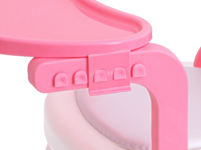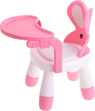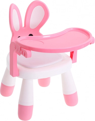 Tato multifunkční židlička s motivem králíčka promění každé jídlo i zábavu v příjemný rituál. Odnímatelný růžový stolek poslouží ke krmení, kreslení i stavění kostek, zatímco ergonomické opěradlo s ušima podpoří správné a pohodlné sezení.