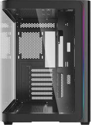 Vynikající design: Zakřivené tvrzené sklo umožňuje kompletní přehled o vnitřních komponentech a dodává počítači esteticky působivý vzhled. Souvislé sklo v jediném kusu přidává na eleganci a modernosti.