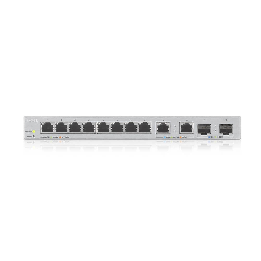 Zyxel XGS1210-12 je vybaven dvěma 10gigabitovými porty uplink SFP+, dvěma 2.5gigabitovými porty a osmi gigabitovými Ethernet porty, umožňující vysoké rychlosti přenosu dat. Propojte přístupové body 802.11ac nebo 802.11ax pro maximální bezdrátovou rychlost. Prioritizujte a chraňte síťový provoz prostřednictvím vestavěného GUI rozhraní.