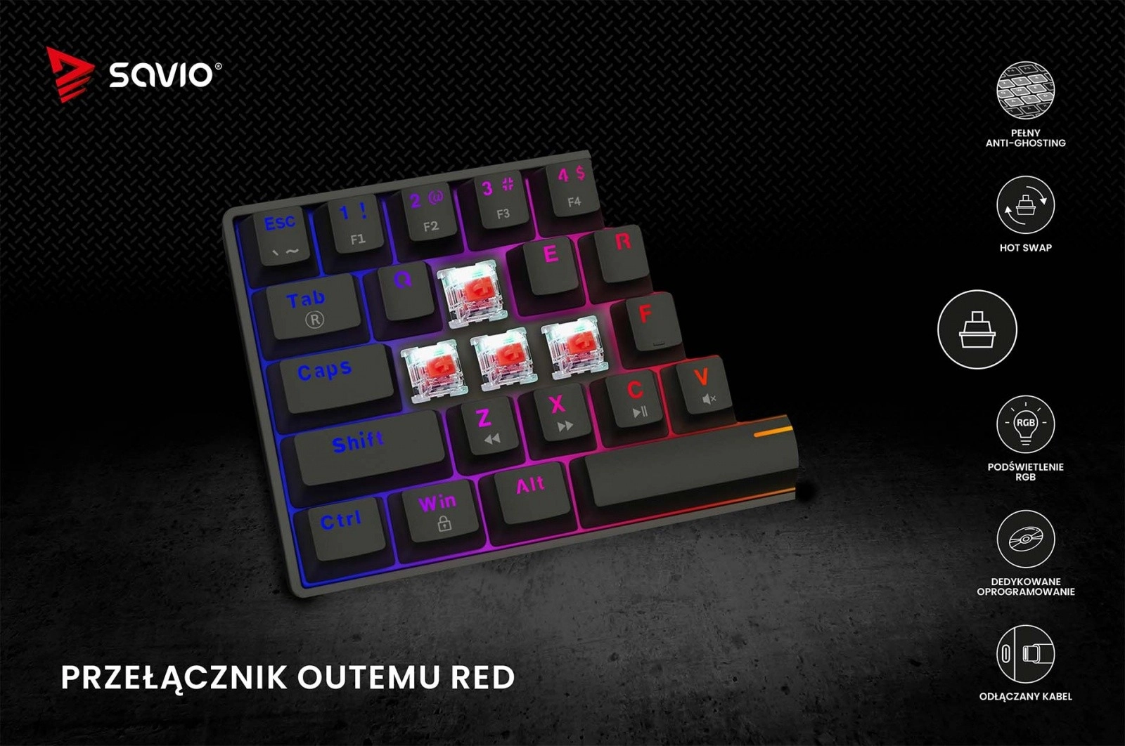 Rádi si přizpůsobíte klávesnici? S technologií Hot Swap můžete rychle a jednoduše měnit přepínače bez pájení. Kompatibilita s 3-pinovými switche umožňuje přizpůsobit funkčnost klávesnice vašim preferencím.