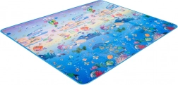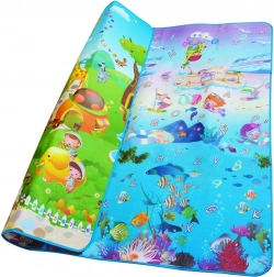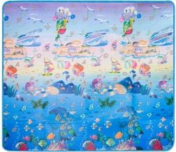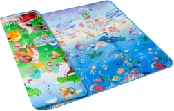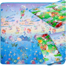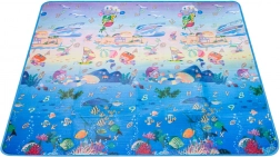 Oboustranná pěnová hrací podložka pro děti nabízí měkké a bezpečné místo na hraní i učení. Jedna strana zobrazuje mořský svět s písmeny a čísly, druhá veselou zoo. Podložka izoluje od chladu, tlumí pády a snadno se čistí – stačí setřít vlhkým hadříkem.