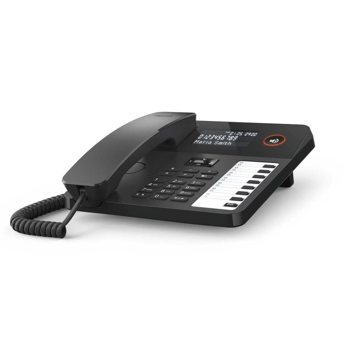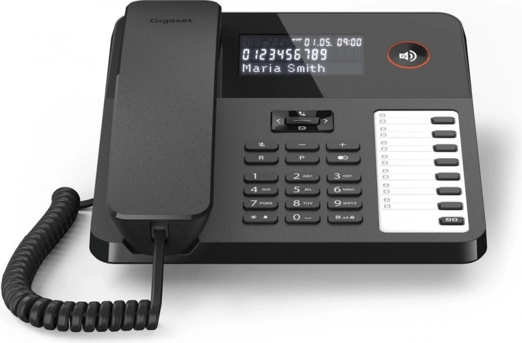 Telefon Gigaset Desk 600 je ideální volba pro domácí i kancelářské použití. Díky třířádkovému podsvícenému LCD displeji zobrazuje telefon informace o hovoru, jako je čas, jméno, číslo či VIP status volajícího. Hlavní obrazovka ukazuje datum, čas a den v týdnu.
