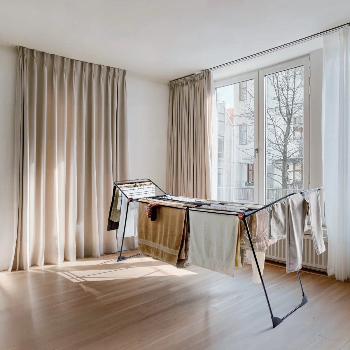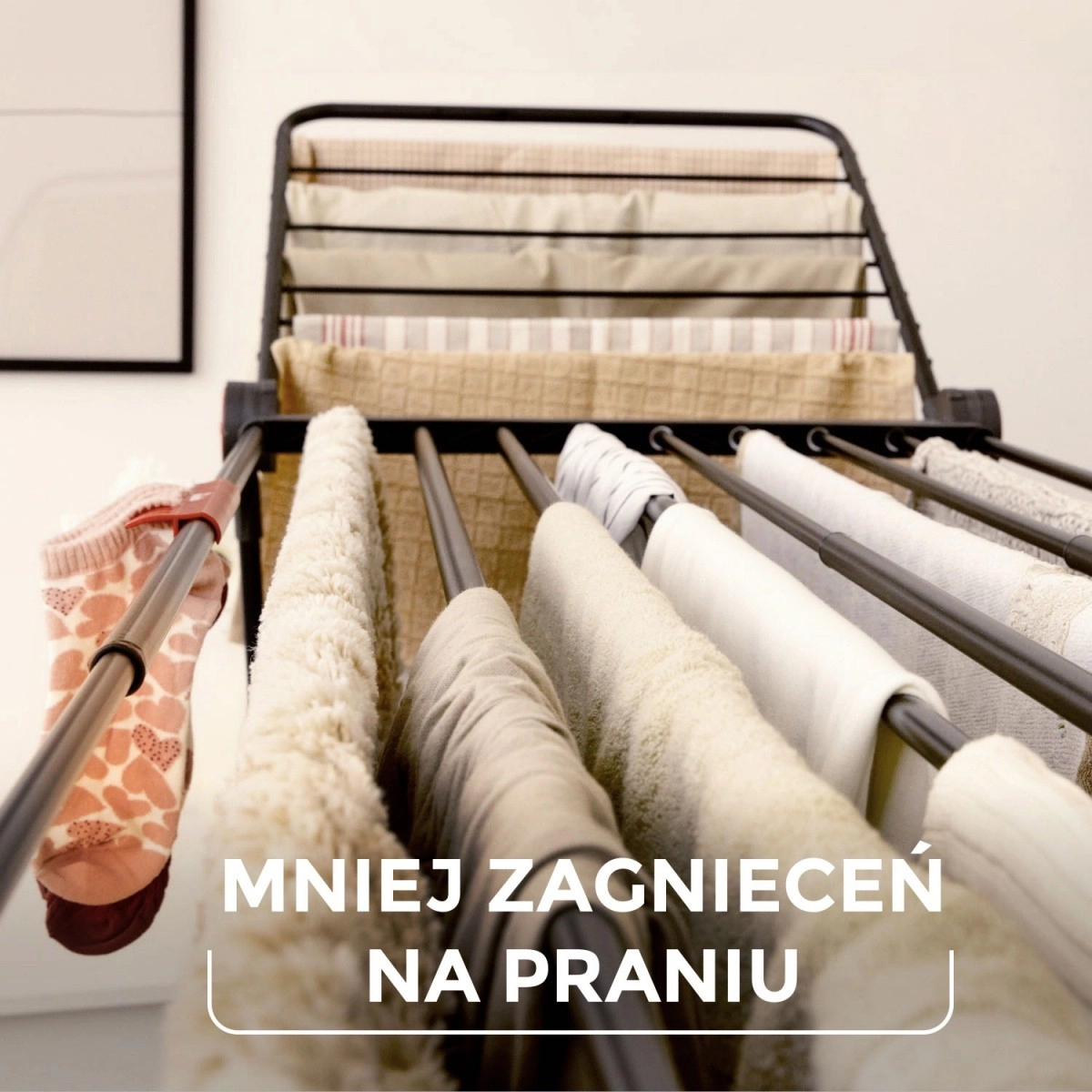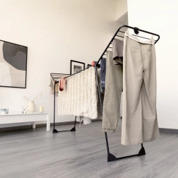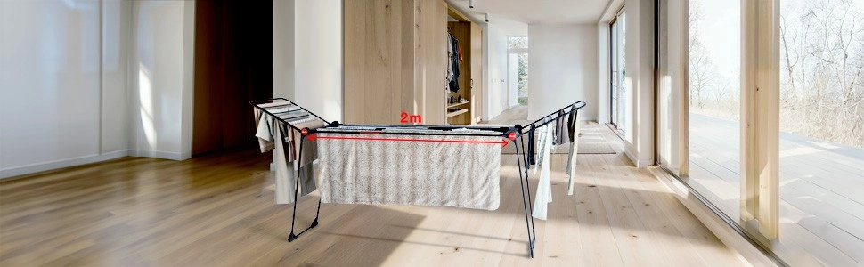 Vysoký stojan se nachází 1 metr nad podlahou, což dělá věšení prádla pohodlnější. Vysoká křídla poskytují další prostor pro velmi dlouhé oděvy. Díky paralelním nohám je sušák stabilní i při plném zatížení.