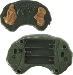 Ovladač ve tvaru fosilie se dvěma tlačítky: jedno pro chůzi a pohyb tlap, druhé pro světla, zvuk a pohyby hlavy.
