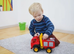 Otevírací kabina s figurkou hasiče podporuje rozvoj fantazie a jemné motoriky. Hračka splňuje přísné bezpečnostní normy EU a je vhodná pro děti od 3 let.