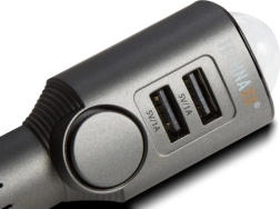 Další funkcí TX-100 je 2 portová nabíječka pro nabíjení mobilních zařízení 5V/1A. Nabíječka je chráněna proti přepětí a přetížení.