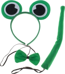 Roztomilá sada pro malé žabičky obsahuje zelenou čelenku s výraznými očky, ladící motýlek a ocásek. Ideální na karneval, maškarní bál, Halloween i domácí hraní. Měkké materiály, univerzální velikost a pevně vyztužené oči zajistí pohodlí i skvělý vzhled po celý den.