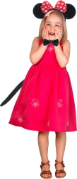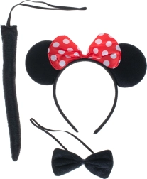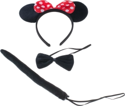 Tato kompletní kostýmní sada myšky je ideální pro karneval, Halloween, školní besídky i domácí hraní. K ikonickým uším s červenou puntíkovanou mašlí ladí černý motýlek a ocásek, takže převlek je hotový během pár vteřin.