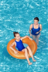 Neonově oranžový plovací kruh BESTWAY s průměrem 91 cm je perfektní volbou pro letní radovánky. Díky pevné PVC konstrukci a odolnosti vůči UV záření a slané vodě si užijete spolehlivou oporu a pohodlí při plavání i odpočinku na hladině.