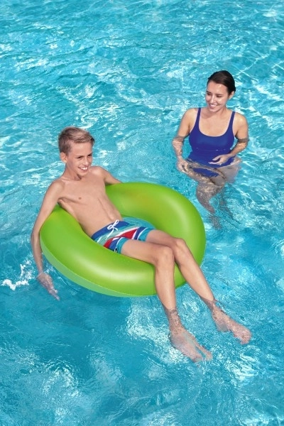 Zářivá barva zajišťuje výbornou viditelnost ve vodě, což přispívá k bezpečnějšímu používání. Kruh je lehký a snadno přenositelný, takže vám v tašce nezabere téměř žádné místo a vezmete ho kamkoli – k bazénu, jezeru i k moři.