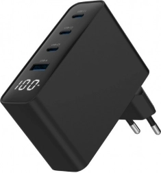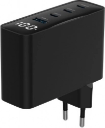 Rychlá a výkonná univerzální GaN nabíječka s výkonem 100W a čtyřmi porty USB (1x USB-A, 3x USB-C). Užijte si rychlé a efektivní nabíjení s kompaktní konstrukcí a praktickým LCD displejem.