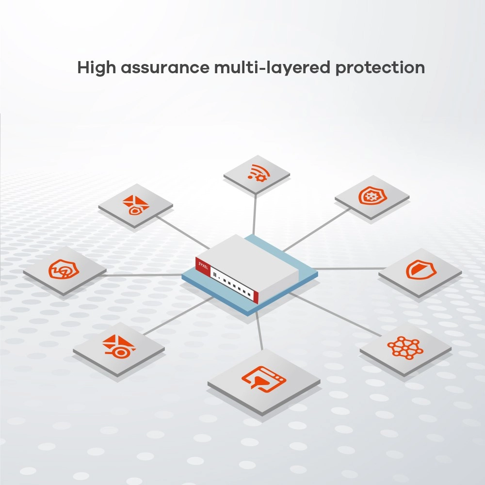 Integrace s Nebula Cloud Management umožňuje detailní nastavení bezpečnostní politiky Zero-Trust Network pro organizace s možností autentizace přístupu a zabezpečeným Wi-Fi. Vyspělá hrozbová inteligence integrovaná s analýzou od předních firem zvyšuje přesnost detekce prostřednictvím širšího pokrytí malwarové databáze.