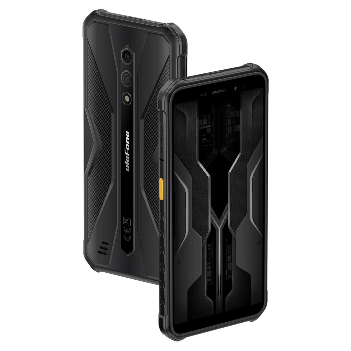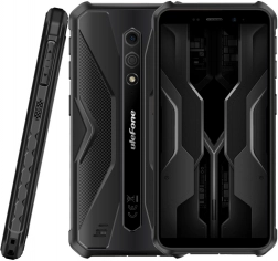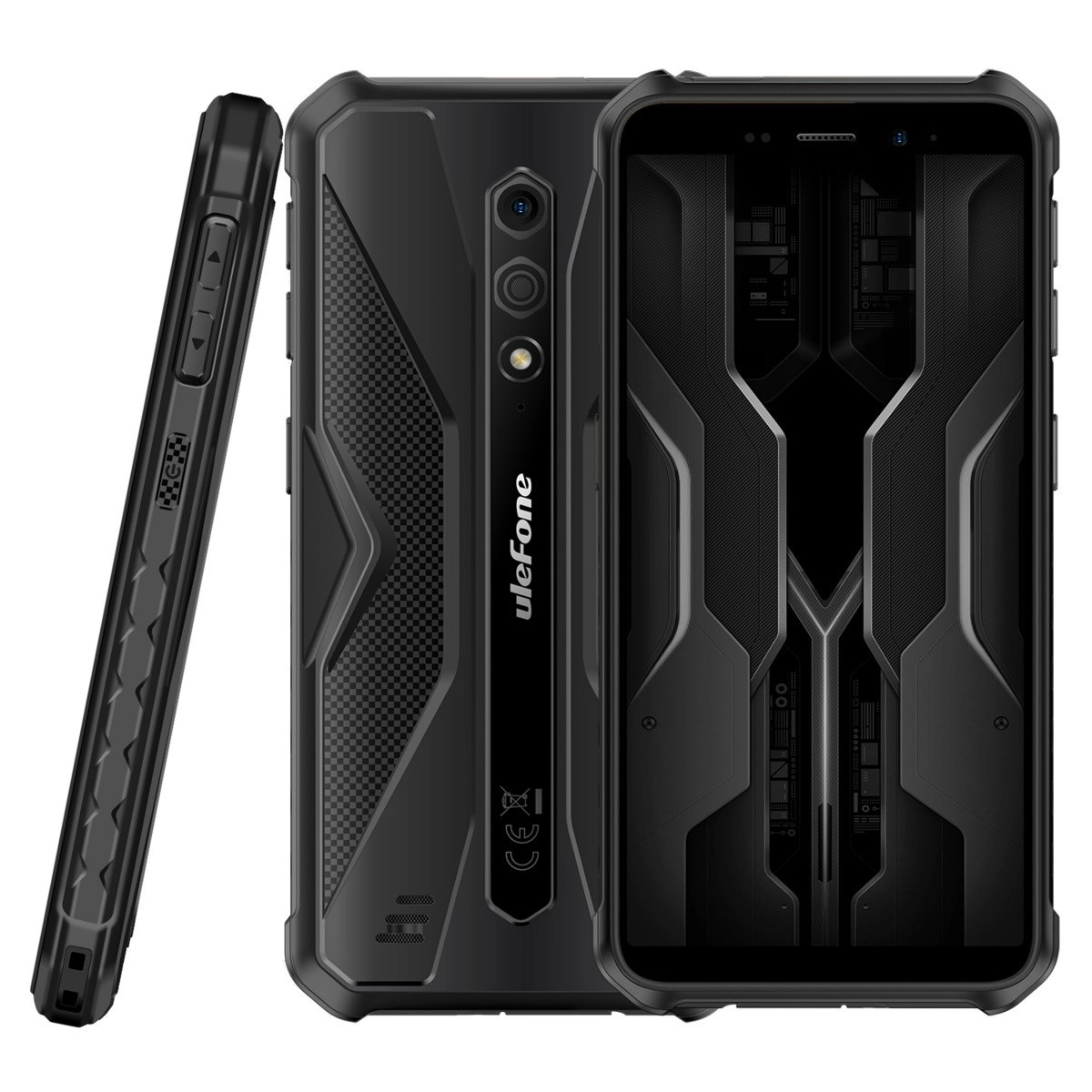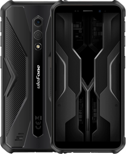 Ulefone Armor X12 Pro vyniká svým robustním černým designem, který je navržen pro náročné podmínky, díky čemuž je telefon odolný vůči nárazům a vodě.