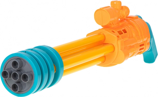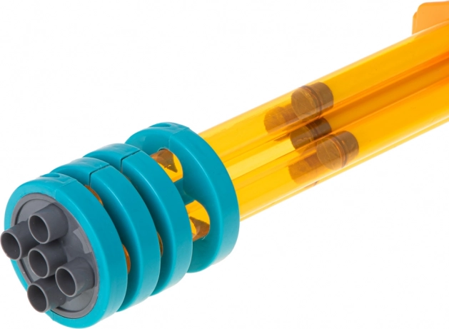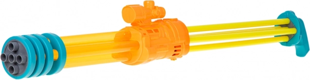 Vyrobena z kvalitního plastu, tato pistole je lehká, ale odolná. Zářivé barvy jako žlutá, oranžová a modrá upoutají pohled každého dítěte.