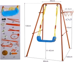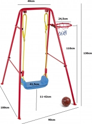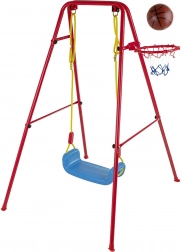 Tato univerzální zahradní houpačka kombinuje oblíbené houpání s basketbalovou zábavou. Stabilní kovový rám s průměrem trubek cca 2,5 cm a pevné lano drží široké plastové sedátko (cca 43 × 25,5 cm) pro pohodlné a bezpečné používání. Součástí je basketbalový koš, který lze snadno připevnit na rám, a také mini míč a pumpička pro okamžité hraní.