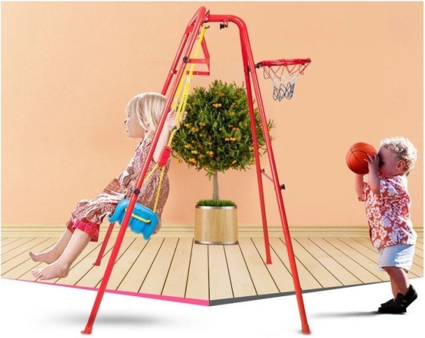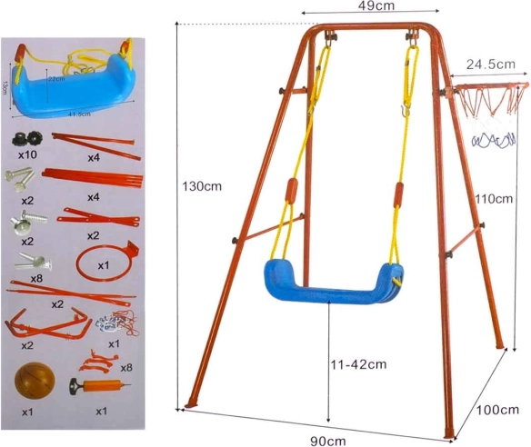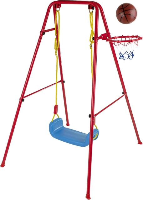 Dopřejte dětem aktivní zábavu na zahradě s kombinovanou houpačkou a basketbalovým košem. Robustní kovová konstrukce, pohodlné plastové sedátko a odolné provazy zajistí bezpečné houpání, zatímco přiložený koš na basketbal s míčem a pumpičkou rozšíří možnosti hry. Snadná montáž, nosnost až 80 kg a živé barvy potěší děti i rodiče.