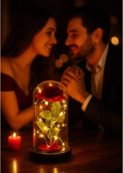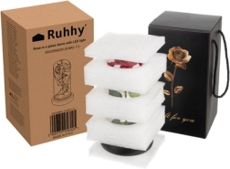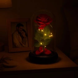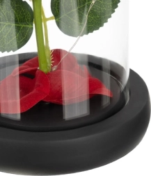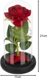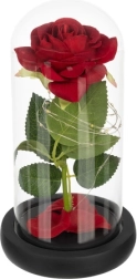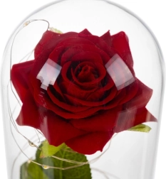 Tato nádherná růže je umístěná v kvalitní skleněné kopuli a je navržena tak, aby zachovala svůj tvar a barvu na věčnost. Osvětlení pomocí LED diod vytváří teplé bílé světlo, které dodává růži výjimečný vzhled.