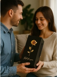 Dodávána v stylovém černém dárkovém boxu s designem zlaté růže a nápisem 'Gift for you'.