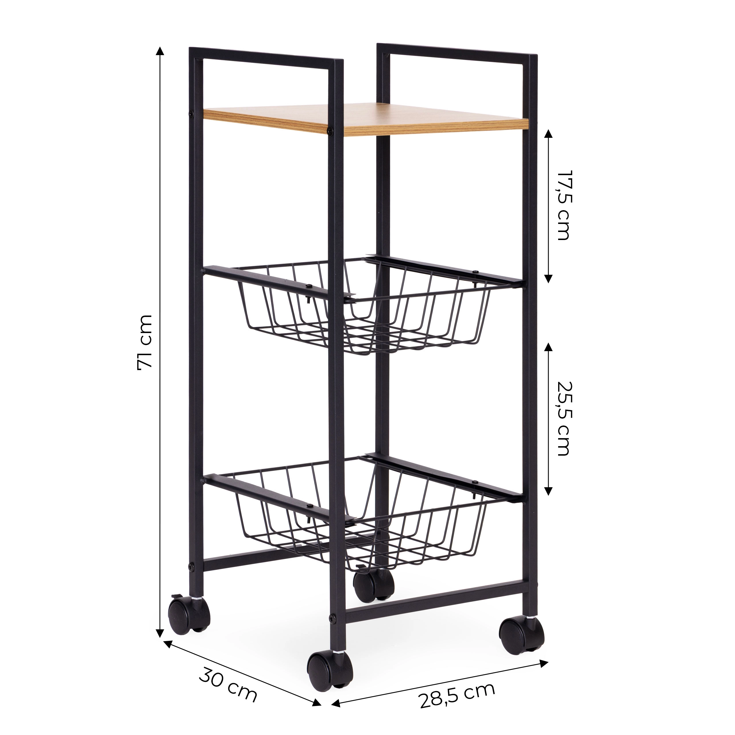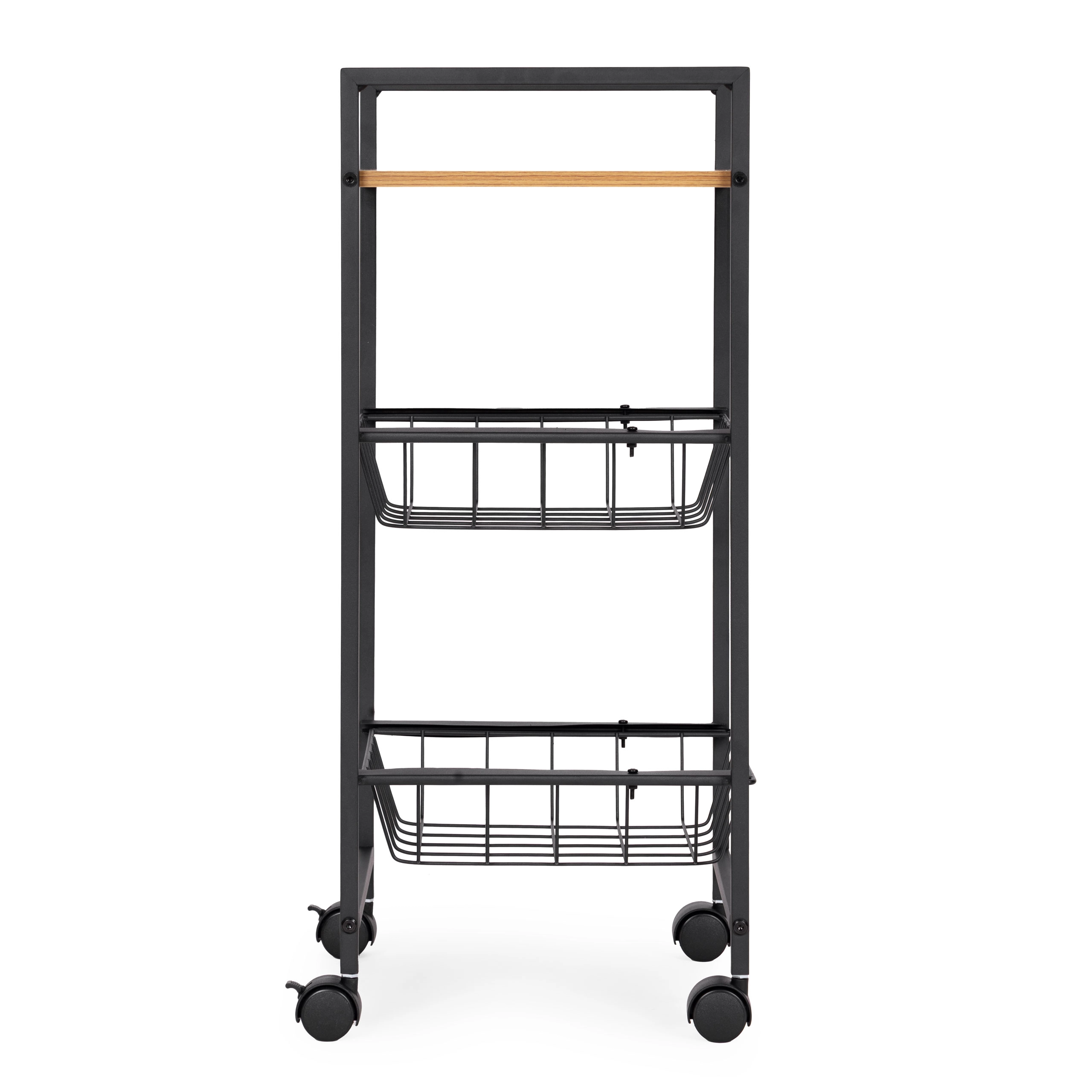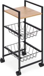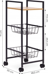 Bohaté materiály - polička MDF potažená melaminem je odolná proti vlhkosti a poškrábání, snadno se čistí a je ideální pro uskladnění v kuchyni či koupelně. Práškově lakovaná kovová konstrukce je odolná proti rzi a poškození, zajišťující stabilitu a dlouhou životnost.