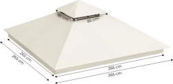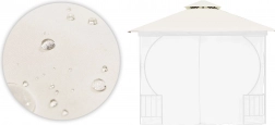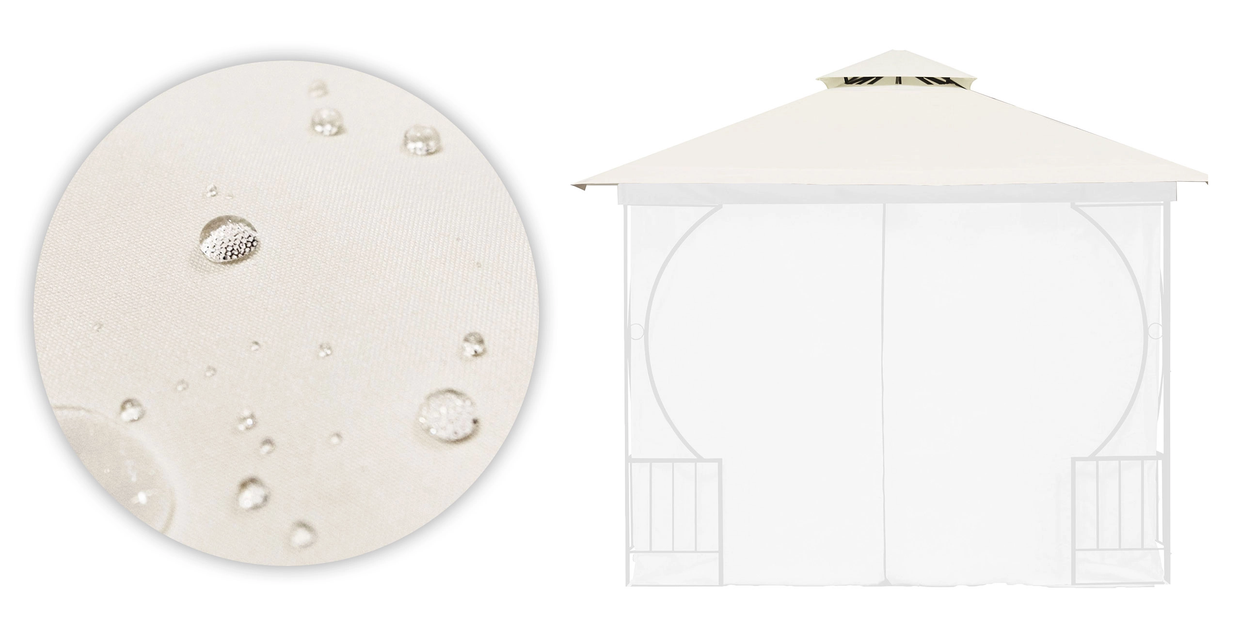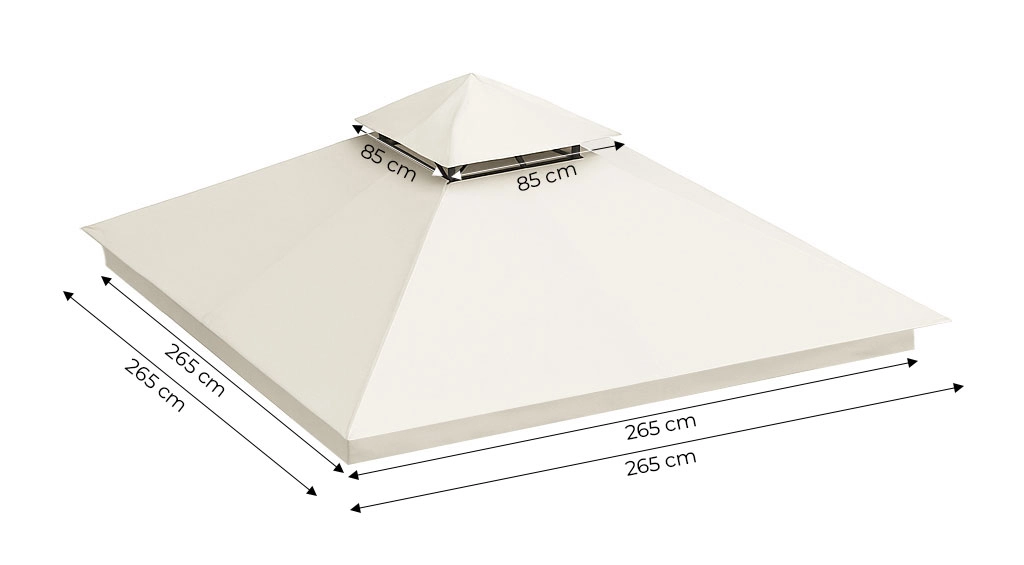 Střecha je vyrobena z pevného polyesteru o hustotě 180 g/m², který zajišťuje vyšší odolnost vůči roztrhání, otěru a povětrnostním vlivům. Je ideální pro venkovní použití, je voděodolná, UV-odolná a chráněna proti růstu plísní.