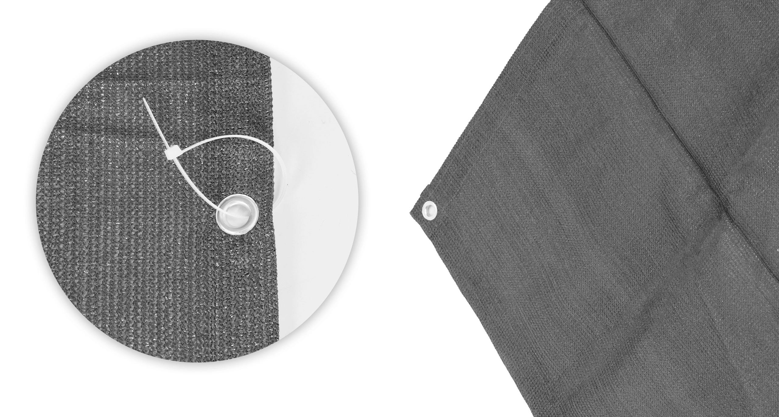 Tkanina je vyrobena z odolného HDPE materiálu, který je znám svou vysokou odolností proti mechanickému poškození a UV záření, takže si udrží svou živou barvu navzdory dlouhodobému vystavení slunci. Materiál neabsorbuje vlhkost, je odolný vůči plísním, deformacím a měnícím se povětrnostním podmínkám. Lehká, ale pevná mřížková konstrukce účinně zastíní prostor, přičemž umožňuje volný průtok vzduchu.