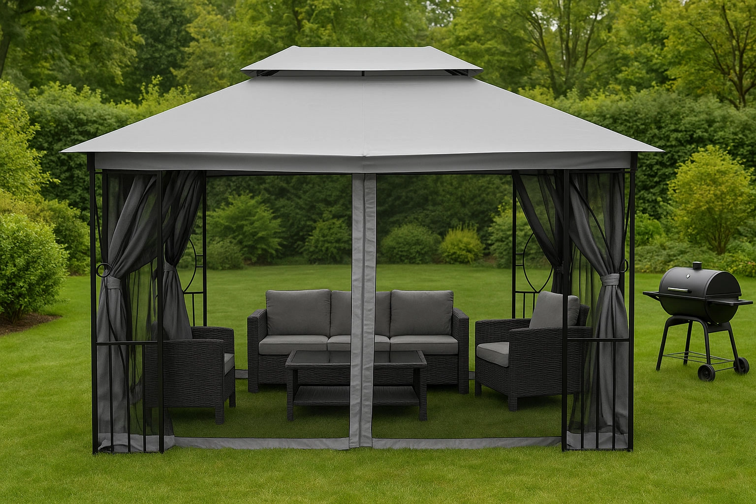 Transformujte svou zahradu na pohodlnou relaxační zónu díky této robustní střeše pro altán. Poskytuje nejen účinnou ochranu před sluncem a deštěm, ale také skvělý způsob, jak prodloužit sezónu zahradničení. Vytváří krytý prostor ideální pro grilování, zahradní párty nebo lenošení s knihou. S touto střechou trvá vaše zahradní sezóna od jara až do podzimu!