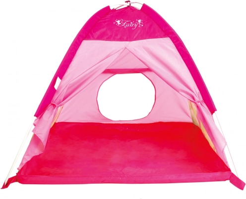 Růžový stan s vílou a zámkem podporuje představivost a vytváří útulné místo pro čtení, hraní i relax.