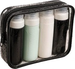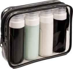 Cestovní kosmetická sada se čtyřmi flexibilními lahvičkami, které jsou v souladu s leteckými požadavky, vodotěsné a ideální pro letadlo. Přináší pohodlí a organizaci na cestách.
