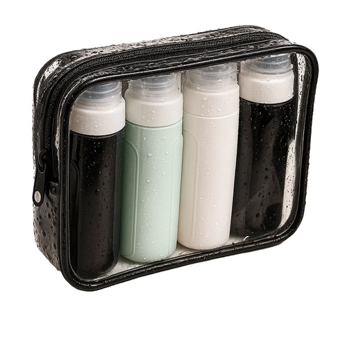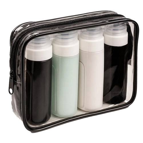 Představujeme praktickou cestovní kosmetickou sadu značky Trizand, která je perfektní pro všechny vaše cestovní potřeby. Jedná se o sadu čtyř silikonových lahviček a průhledné vodotěsné tašky, která splňuje standardy TSA/IATA pro přepravu tekutin v příručním zavazadle. Už žádné starosti s vylitým šamponem v kufru!