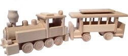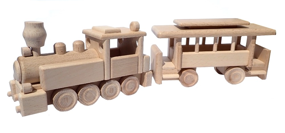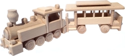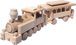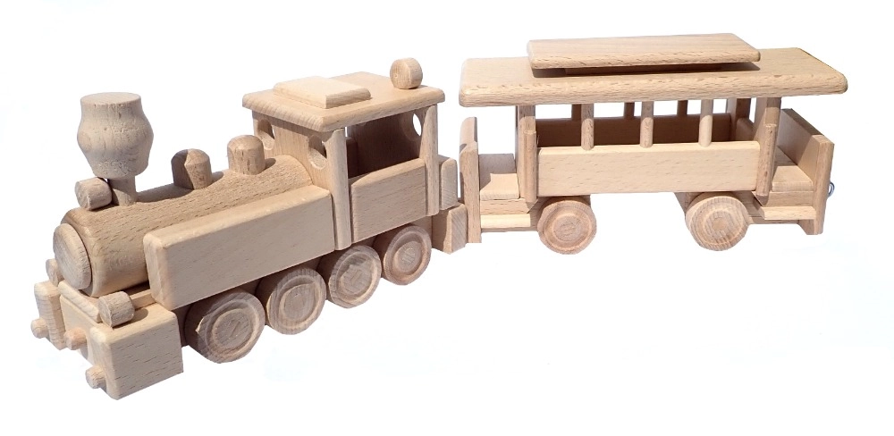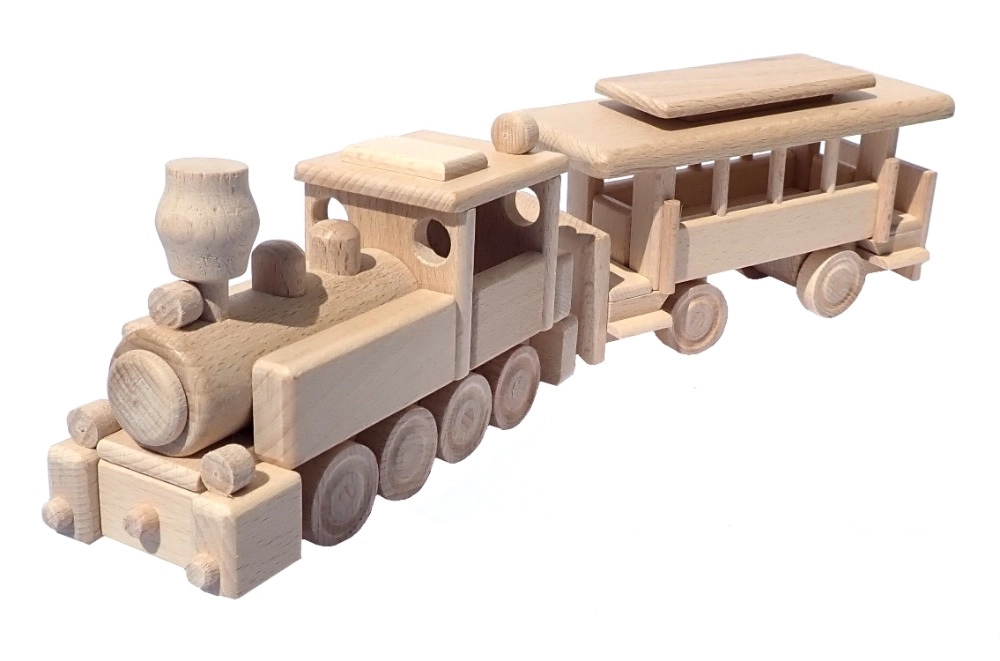 Vláček je vyroben z masivního buku a ošetřen pouze voskem a leštěním. Zachovává autentickou kresbu dřeva, je šetrný a bezpečný pro dětské ruce.