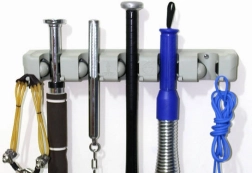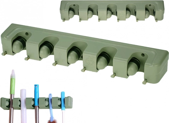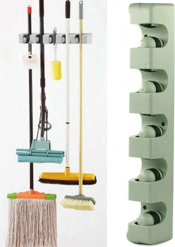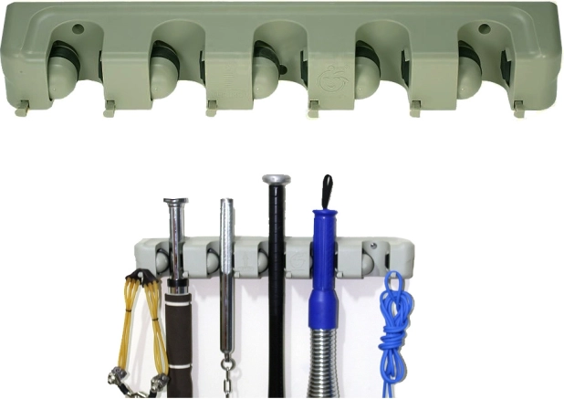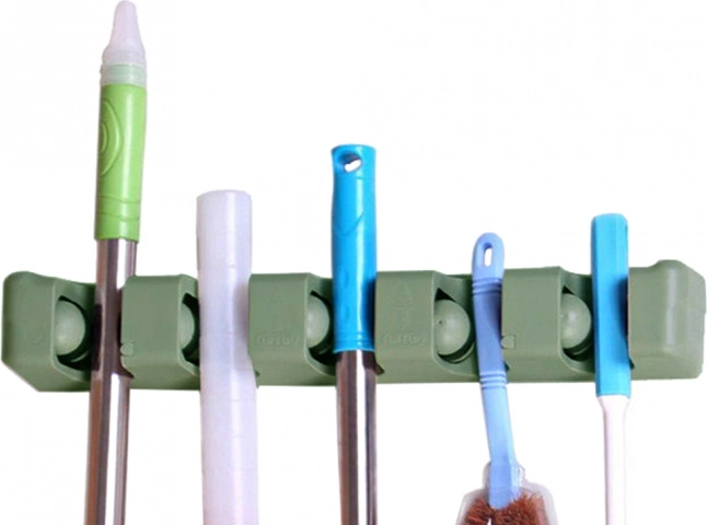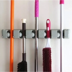 Nástěnný držák na mopy a košťata je ideální pomocník pro každou domácnost či garáž. S pěti nastavitelnými sloty a šesti malými háčky nabízí dostatek prostoru pro uložení kartáčů, mopů a dalších čistících nástrojů. Vyrobena z odolného plastu, drží pevně různé průměry tyčí, takže se hodí pro širokou škálu domácích i zahradnických potřeb.