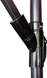 Slunečník je vybaven robustní konstrukcí z práškově lakované oceli, která zajišťuje výjimečnou odolnost proti povětrnostním vlivům.
