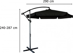 Velký zahradní slunečník o průměru 290 cm poskytuje široký stín, ideální do zahrad nebo na terasy. Je vybaven mechanickým systémem otvírání, který umožňuje snadné a rychlé skládání i rozkládání. Stabilní a odolná konstrukce z práškově lakované oceli vydrží i silnější vítr.