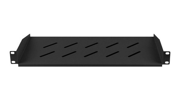 Větraný povrch s podélnými otvory podporuje efektivní chlazení a pomáhá udržet stabilní provozní teplotu. Nosnost až 25 kg poskytuje dostatečnou rezervu pro zesilovače, switche, UPS, NVR/DVR či další příslušenství.
