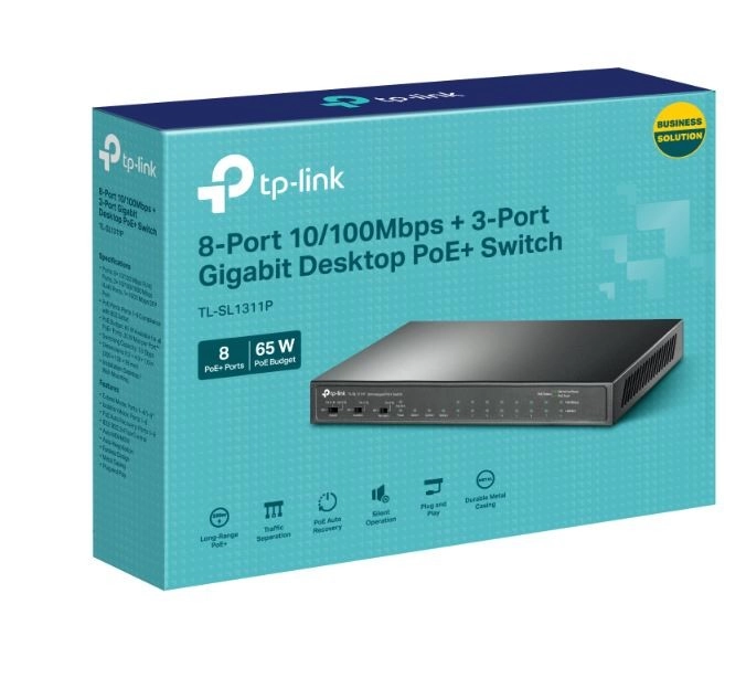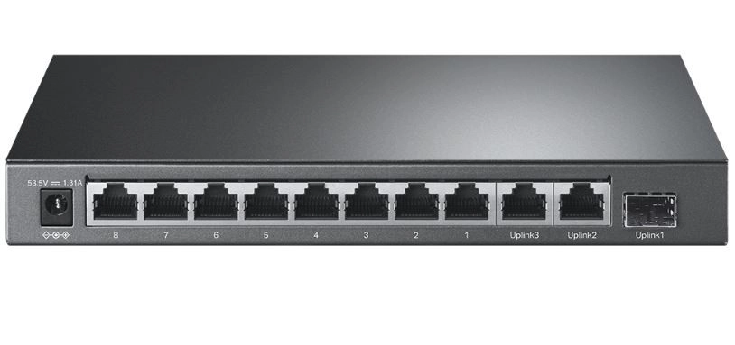 Přepínač SL1311P nabízí 8 portů PoE+ pro přenos dat a napájení, spolu s 2 gigabitovými a 1 SFP portem pro vysokorychlostní konektivitu bez nutnosti složité instalace.