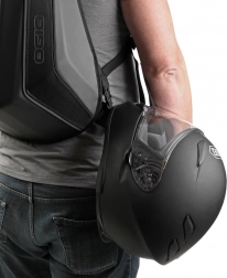 Batoh je vybaven nastavitelnými a pohodlnými popruhy, které zlepšují aerodynamiku a zabraňují poškrábání vašeho helmu. K tomu přispívají i reflexní prvky, které zvyšují viditelnost za každého počasí. Má jednoduchý systém odepínání batohu s možností odemknutí jednoho ramenního popruhu pro snadné sejmutí.
