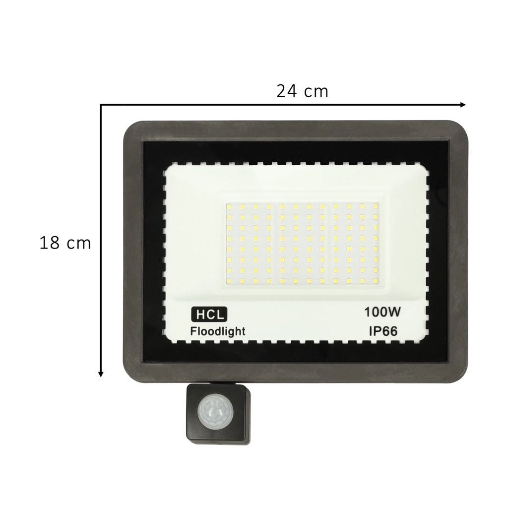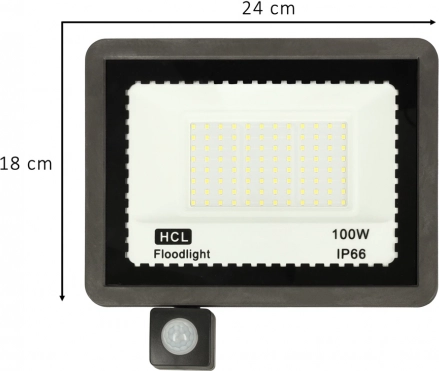 Lampa s pohybovým senzorem určená pro efektivní osvětlení zahrádky či dvora s vysokým výkonem 100W a schopností detekovat pohyb na vzdálenost 2-10 metrů.