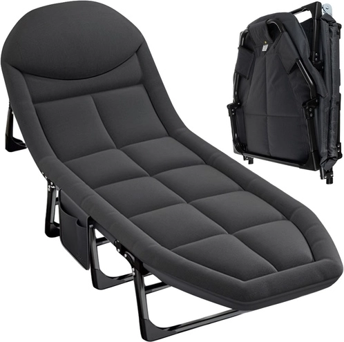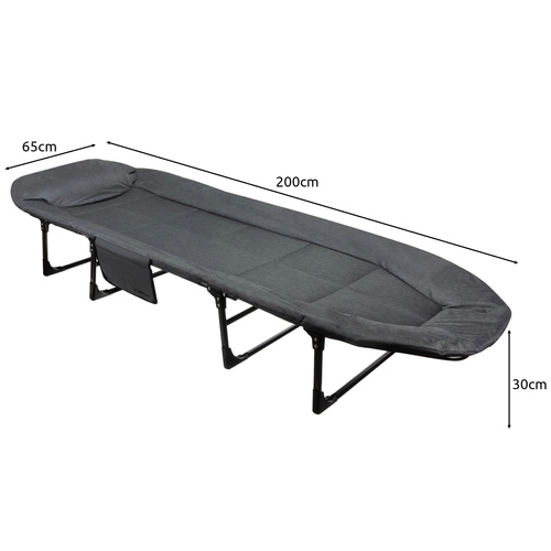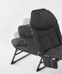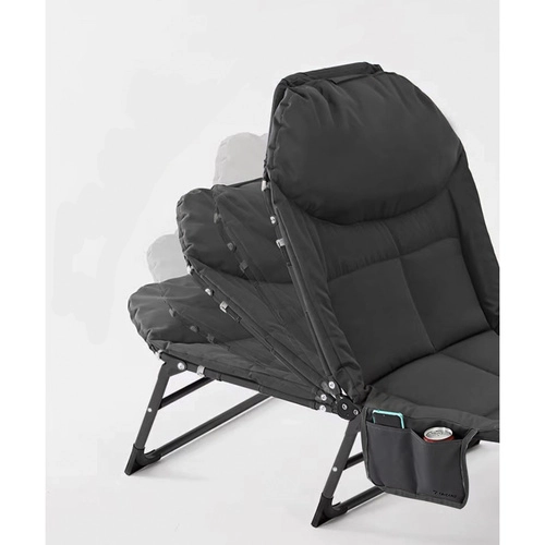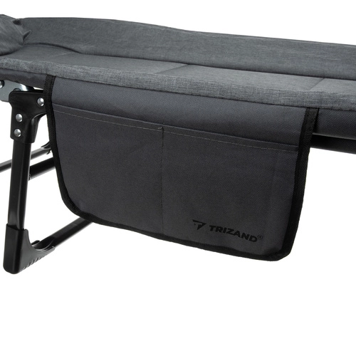 Po složení je lůžko kompaktní a snadno transportovatelné, což usnadňuje jeho přenášení a uskladnění. Praktická boční kapsa zajistí, že vaše osobní věci jako telefon či kniha budou vždy na dosah.