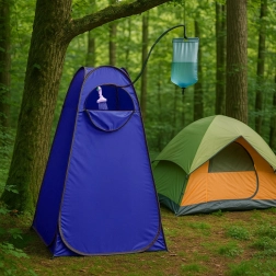 Praktický vstup: Vstup do stánku má zavíratelnou klopu na zip pro snadný přístup a úplné soukromí. Dveře lze rovněž srolovat a upevnit zámky, což vytváří otevřený prostor a zlepšuje přístup do interiéru.